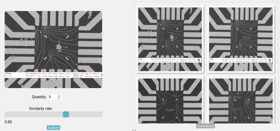 The input SEM image (left) and the most similar images (right) retrieved from the dataset by the SEM Similarity service